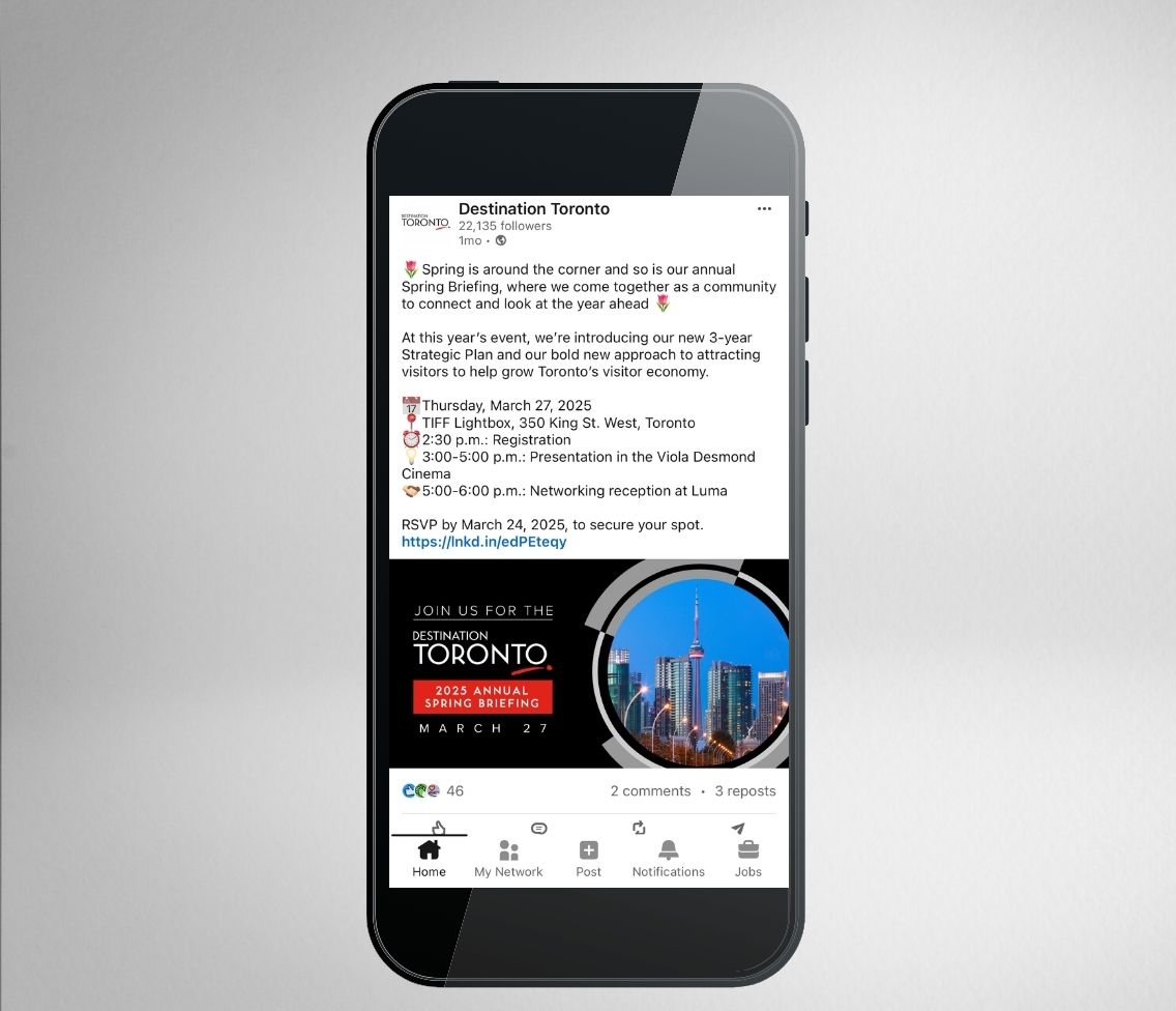 Built the visual identity for the 2025 Spring Briefing, including imagery, layout, and graphic elements that reflected the event theme while staying true to the Destination Toronto brand